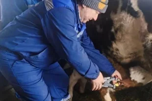 Саратовские ветеринары спасли корову с новорожденным телёнком