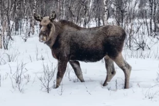 Саратовцы заметили бегающих по заснеженному поселку лосей