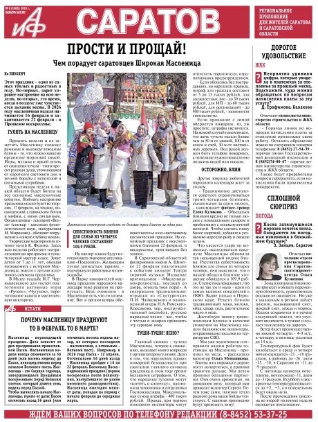 Еженедельник «Аргументы и Факты» № 6. АиФ-Саратов № 5 11/02/2026