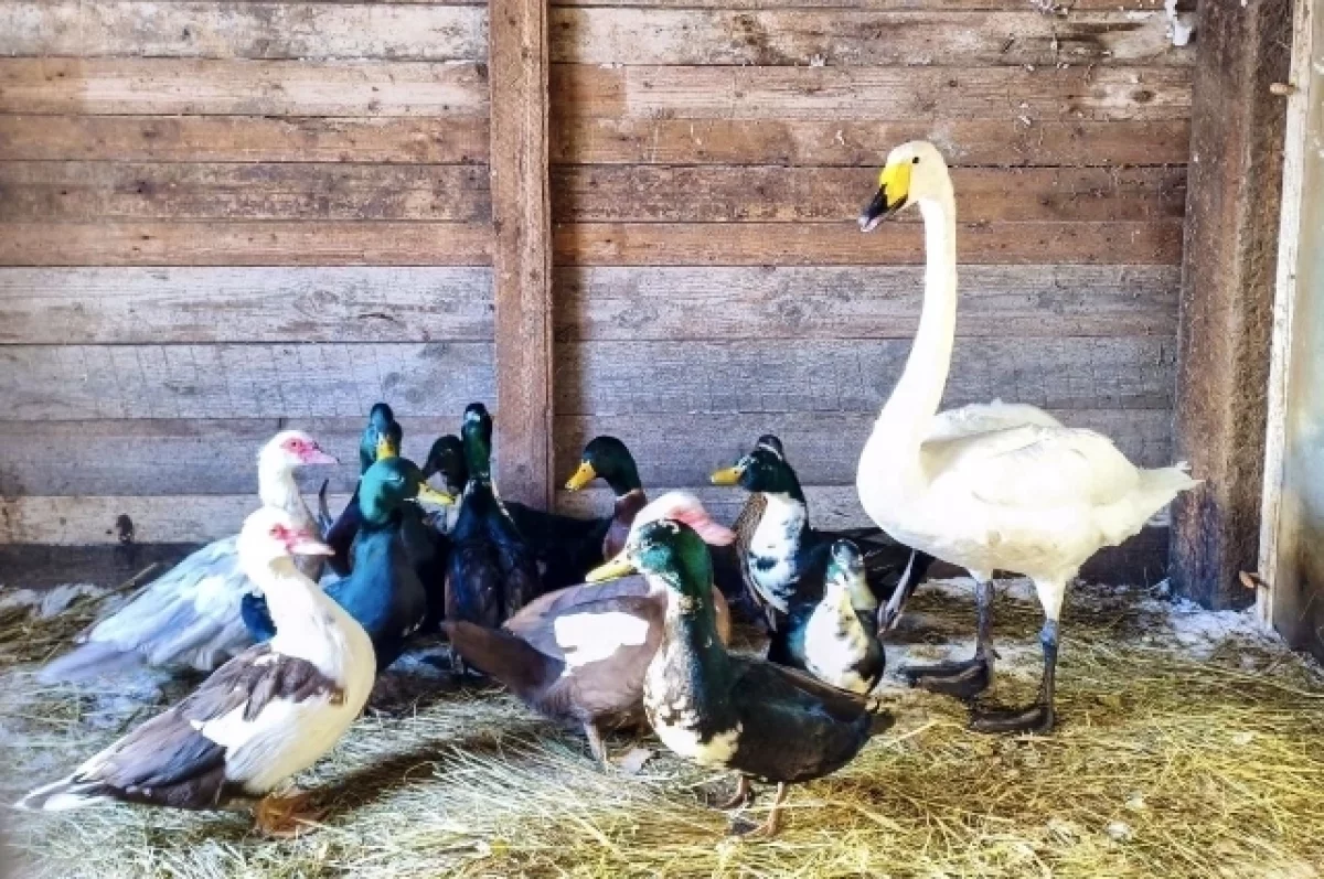 Спасенного лебедя оставили зимовать в экопарке. Весной птица сама решит — остаться или продолжить свой путь дальше.