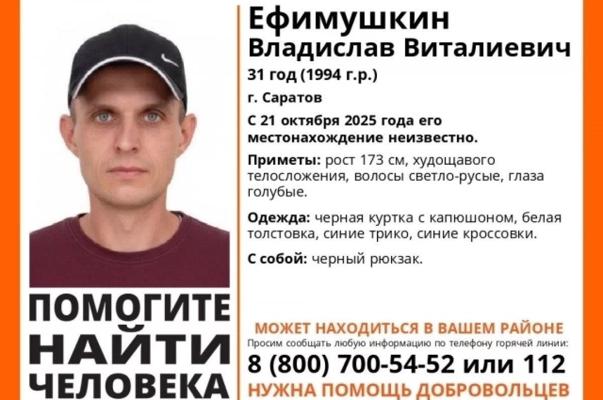 В Саратове пропал 31-летний Владислав Ефимушкин.