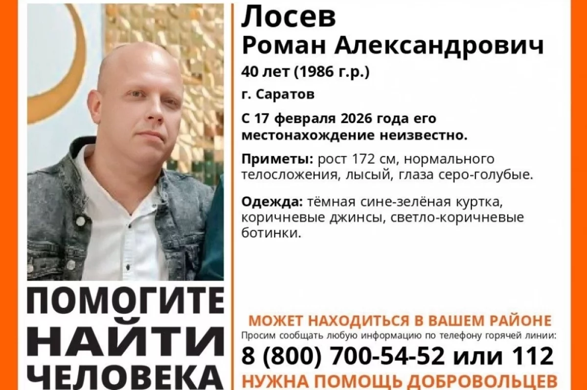 В Саратове пропал 40-летний Роман Лосев, сообщает поисковый отряд «ЛизаАлерт».