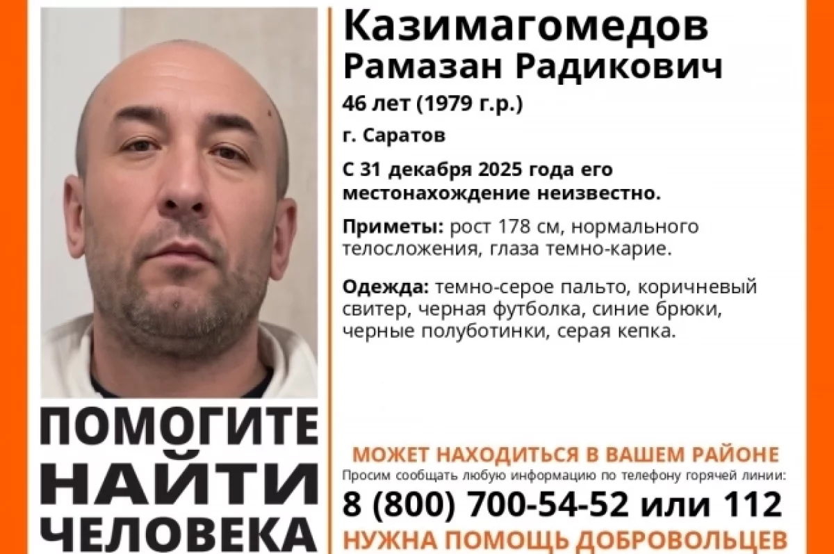 В Саратове 31 декабря 2025 года пропал 49-летний Рамазан Казимагомедов.