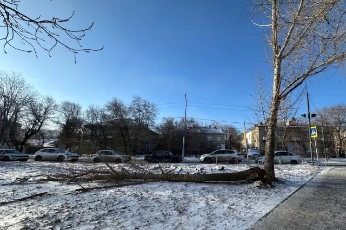 В Ленинском районе Саратова рухнуло дерево около тротуара с пешеходами.