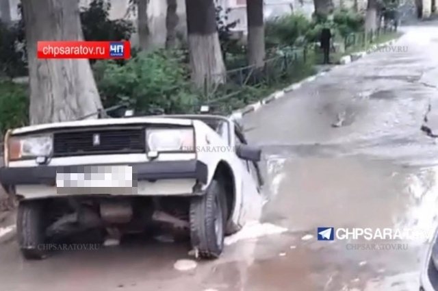 Из-за потопа в яму с водой провалился ВАЗ около дома № 6.