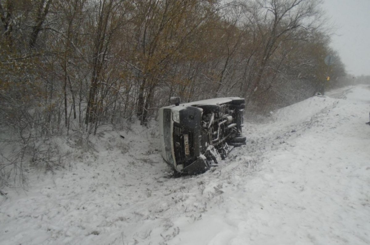 Утром 17 ноября в Энгельсском районе в кювет перевернулся GAZ NEХТ.