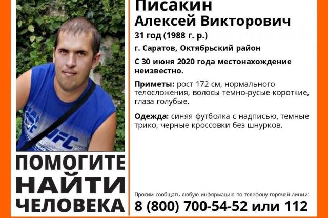 Приметы: рост 172 см, нормального телосложения, короткие темно-русые волосы, глаза голубые. На момент пропажи был одет в синюю футболку с надписью, темные трико, черные кроссовки без шнурков. Волонтеры просят сообщить о его местонахождении по телефонам: 8-800-700-54-52 или 112.