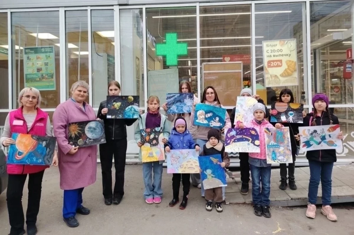 Участницы партийного проекта «Женское движение Единой России», активисты микрорайона Пролетарский Людмила Измайлова и Анна Агапова организовали выставку детских рисунков, приуроченную к Дню космонавтики.