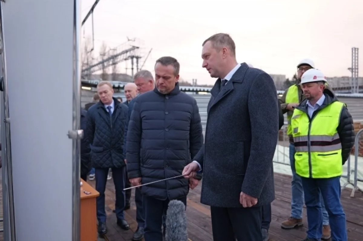 Министр транспорта РФ Андрей Никитин осмотрел строительство железнодорожного вокзала в Саратове.