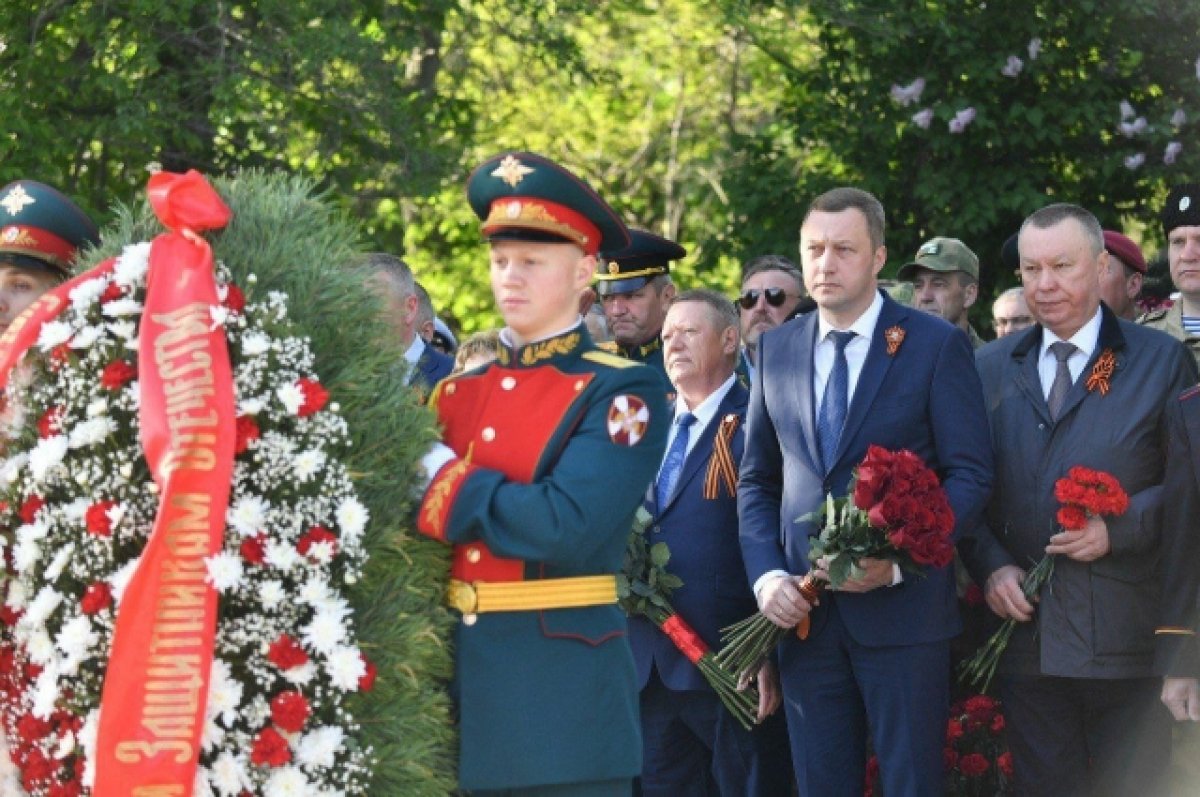 В Саратове утром 8 мая возложили цветы к Мемориалу защитникам Отечества на Воскресенском кладбище.
