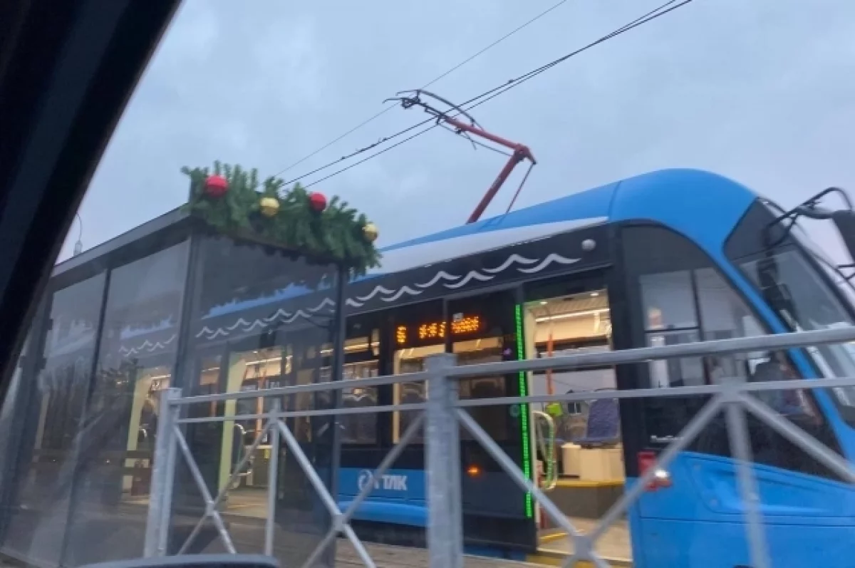 Новогодними украшениями украсили остановки общественного транспорта по трамвайному маршруту № 6 от Поливановки до 6-й Дачной.