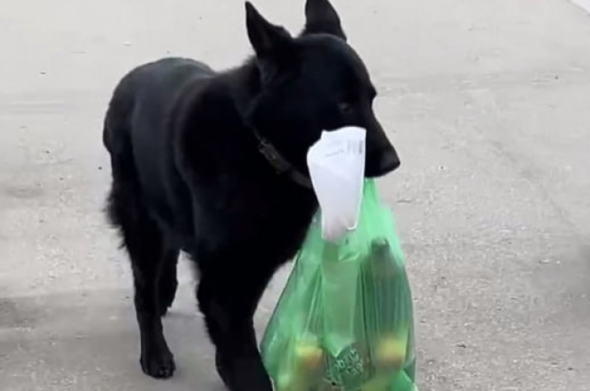 Саратовцы заметили 2 мая собаку, несущую пакет с продуктами хозяина по улице Чернышевского.