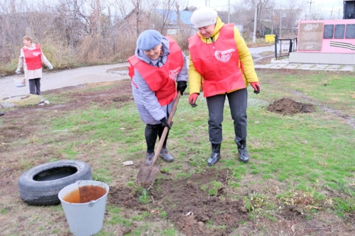 В ней приняли участие молодые железнодорожники и ветераны железнодорожного транспорта. Они высадили 23 кедра возле паровоза-памятника.