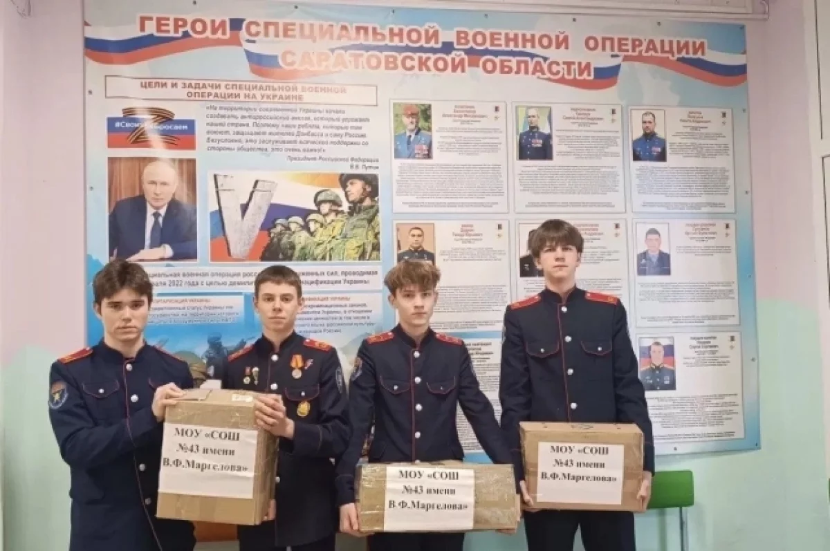 В преддверии 23 февраля учащиеся школы МОУ «СОШ № 43 им.В.Ф.Маргелова» подготовили подарки для участников специальной военной операции. Вместе с родителями, педагогами и активистами проекта «Женское движение Единой России» они отправили бойцам письма, открытки и гуманитарную помощь.