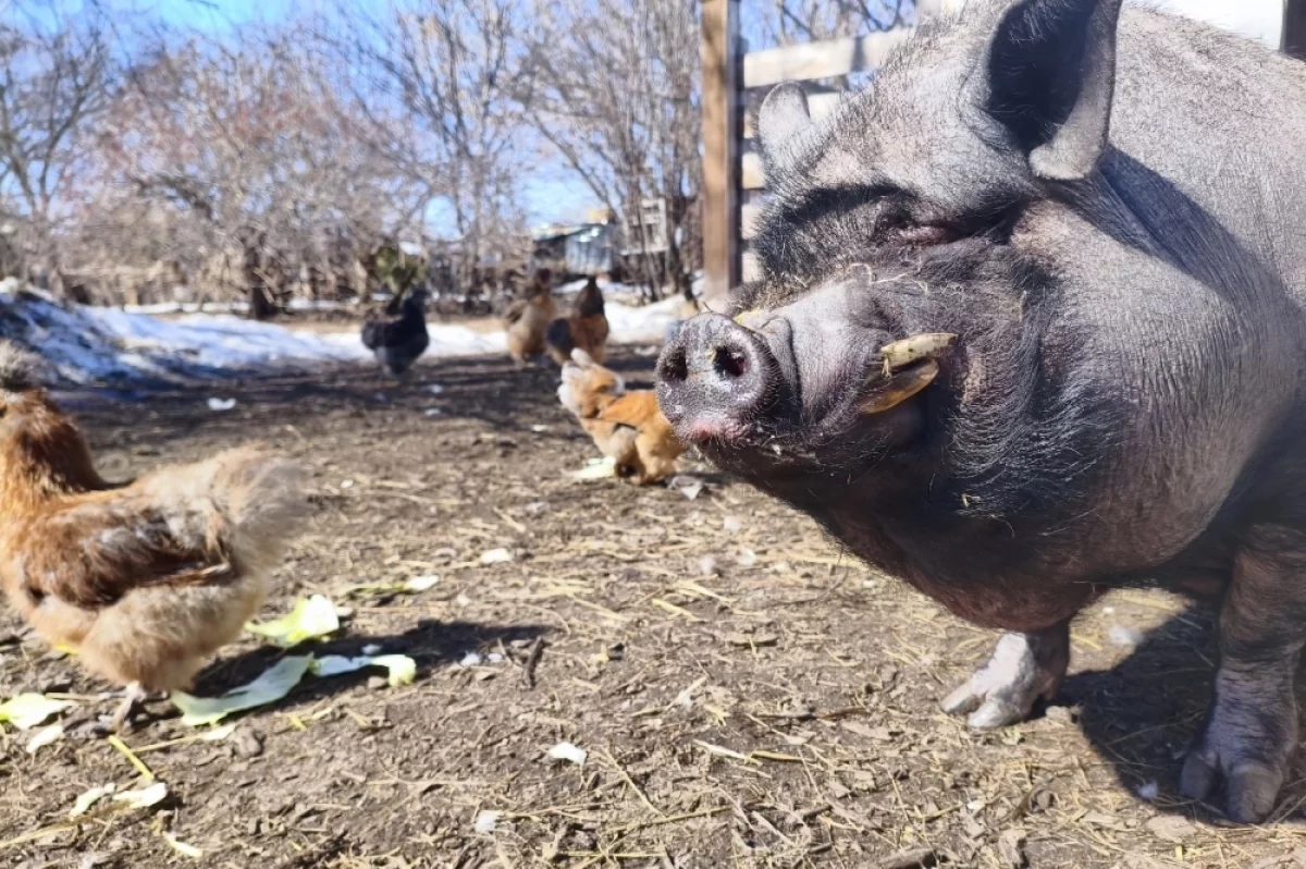В саратовском экопарке поросёнок Фунтик радуется теплу и первоцветам