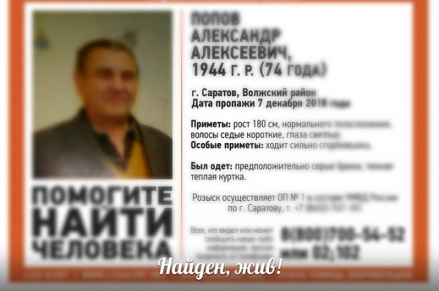 Как рассказали «АиФ-Саратов» волонтеры поискового отряда «Лиза Алерт», 74-летний Александр Попов нашелся живым.
