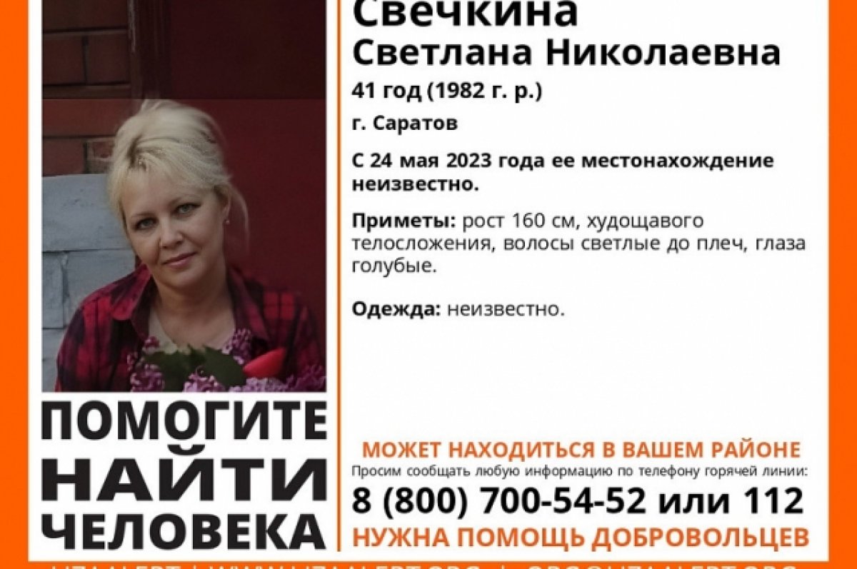Поисковый отряд «Лиза Алерт» разыскивает жительницу Саратова Светлану Свечкину. О начале поисков они рассказали в группах своих соцсетей сегодня, 12 июня.